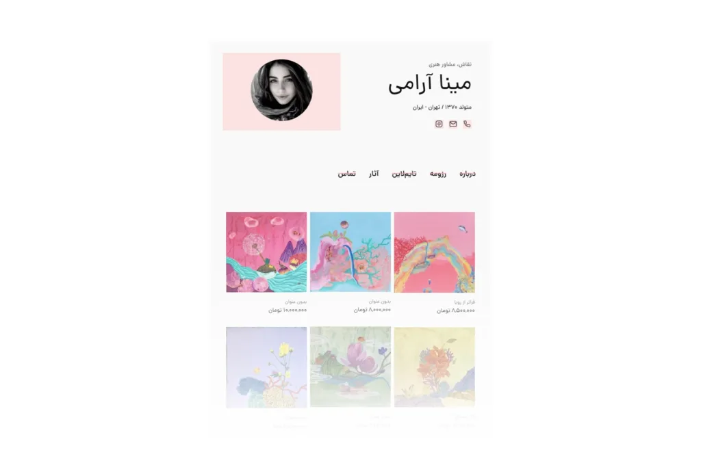 نمونه بخش «آثار هنری» در صفحه هنرمند